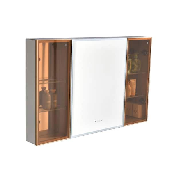 48 in. W x 30 in. H Rectangle Silver Aluminum Recessed or Surface Mount Medicine Cabinet, Medicine Cabinet with Mirror