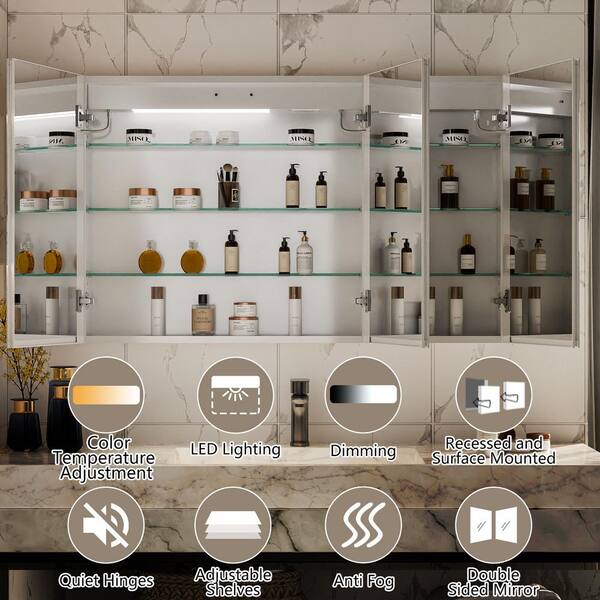 48 in. W x 30 in. H Silver Rectangular Aluminum Recessed/Surface Mount Light Medicine Cabinet with Mirror and Dimming