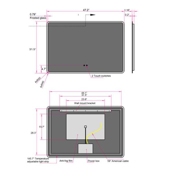 48 in. W x 32 in. H Rectangular Frameless Wall Mounted Bathroom Vanity Mirror LED Backlit Anti-Fog in White