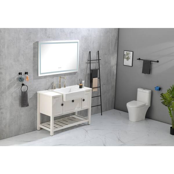 48 in. W x 36 in. H LED Large Rectangular Steel Framed Dimmable Wall Bathroom Vanity Mirror in White