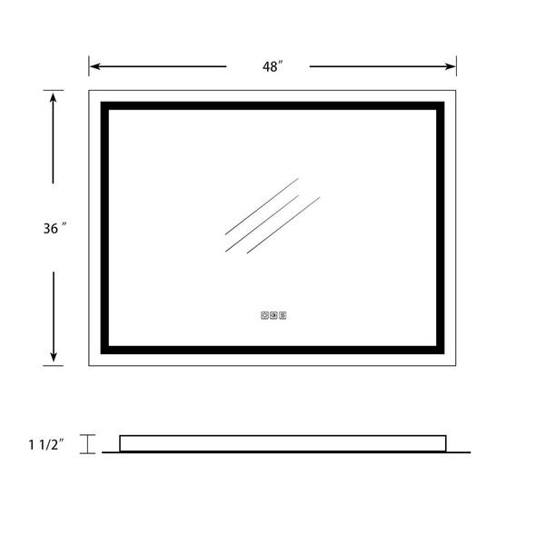 48 in. W x 36 in. H Large Rectangular Framed LED Light Anti-Fog Wall Bathroom Vanity Mirror in Silver