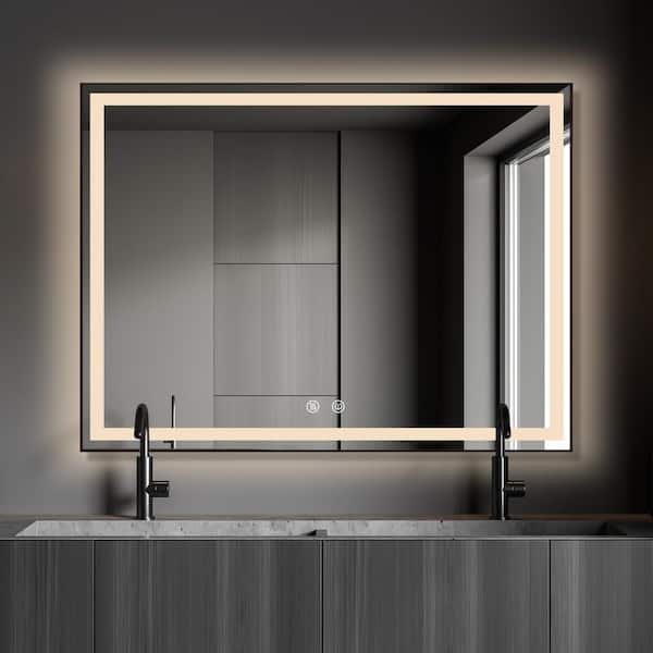 48 in. W x 36 in. H Lighted Modern Rectangular Framed Anti-Fog Dimmable Wall Mounted LED Bathroom Vanity Mirror in Black