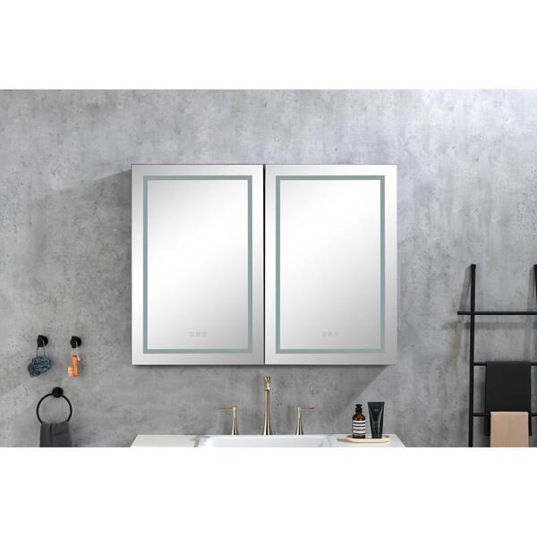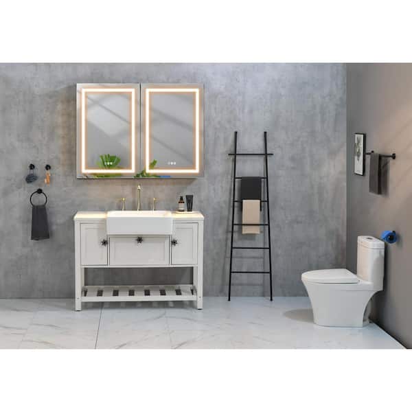 48 in. W x 36 in. H Middle Rectangular Matt Black Aluminum Surface Mount Medicine Cabinet with Mirror