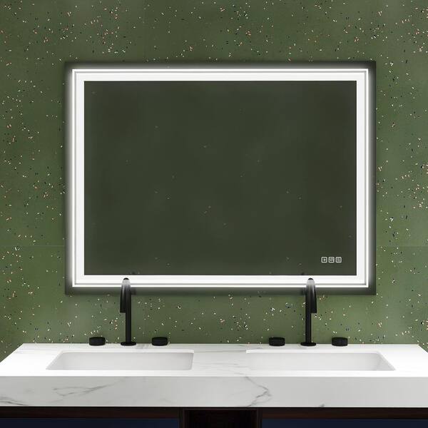 48 in. W x 36 in. H Rectangular Frameless Anti-Fog LED Wall Bathroom Vanity Mirror in Silver