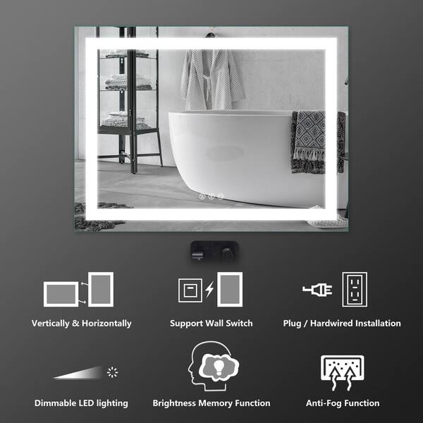 48 in. W x 36 in. H Rectangular Frameless Anti-Fog, LED Wall Mount Bathroom Vanity Mirror in Silver