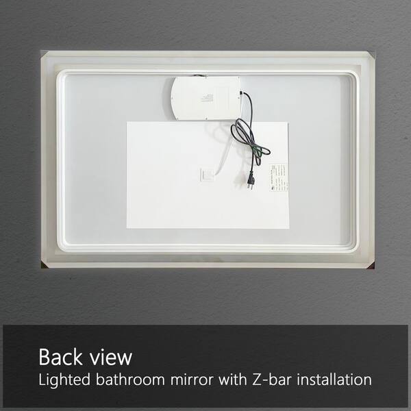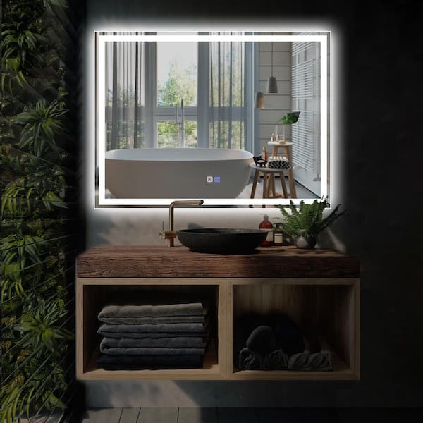 48 in. W x 36 in. H Rectangular Frameless Anti-Fog Wall Bathroom Vanity Mirror in White