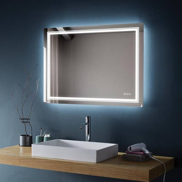 48 in. W x 36 in. H Rectangular Frameless Anti- fog Wall Bathroom Vanity Mirror in Silver with Button