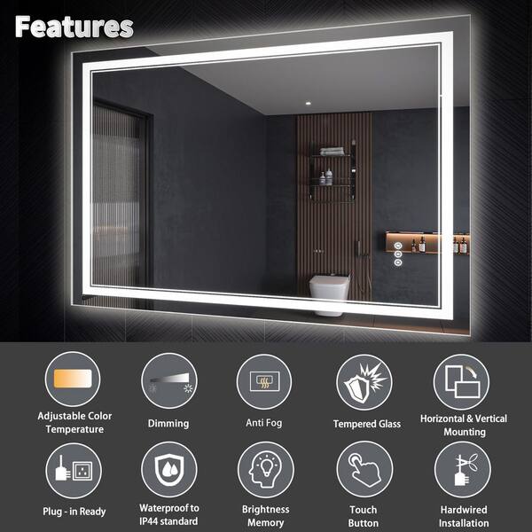 48 in. W x 36 in. H Rectangular Frameless LED Light and Anti-Fog Wall Bathroom Vanity Mirror in Matte White