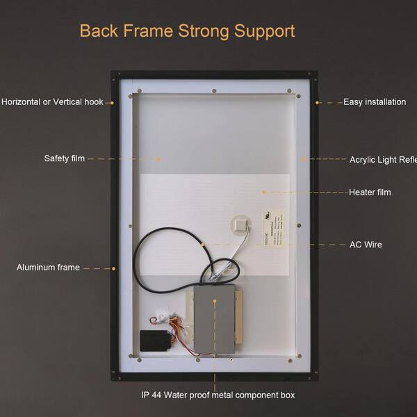 48 in. W x 36 in. H Rectangular Frameless LED Wall Mount Anti-Fog Modern Decorative Bathroom Vanity Mirror