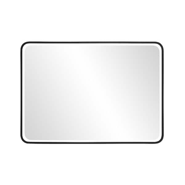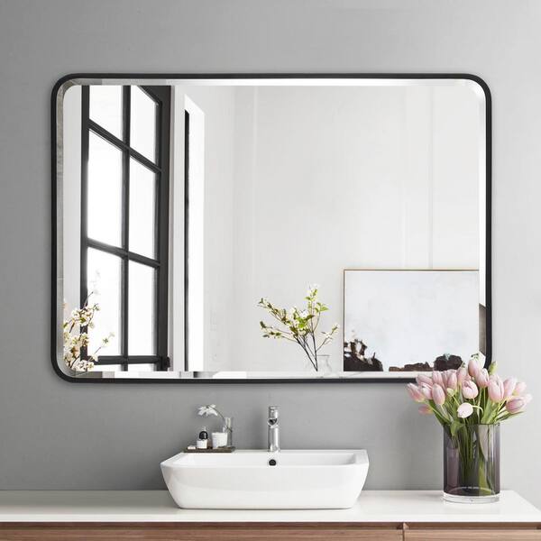48 in. W x 36 in. H Rounded Rectangular Aluminum Frame Beveled Glass Wall Mounted Bathroom Vanity Mirror in Black