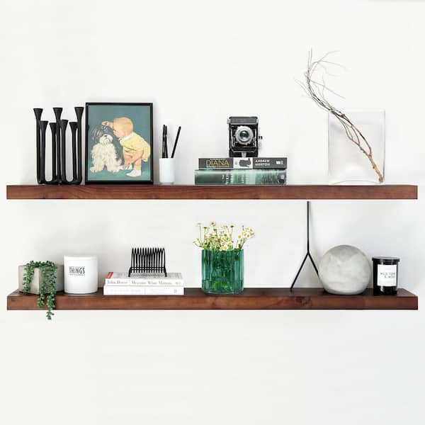 48 in. W x 6.5 in. D Walnut Floating Shelf Solid Wood Decorative Wall Shelf Set of 2