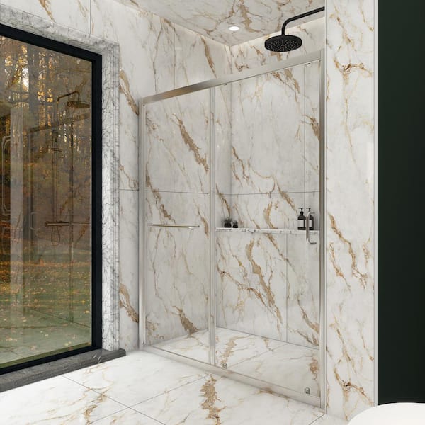 48 in. W x 72 in. H Sliding Semi - Frameless Shower Door in Chrome Finish with Clear Glass