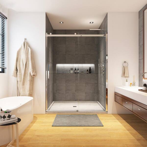 48 in. W x 76 in. H Single Sliding Frameless Shower Door in Chromed with 5/16 in. (8 mm) Clear Glass