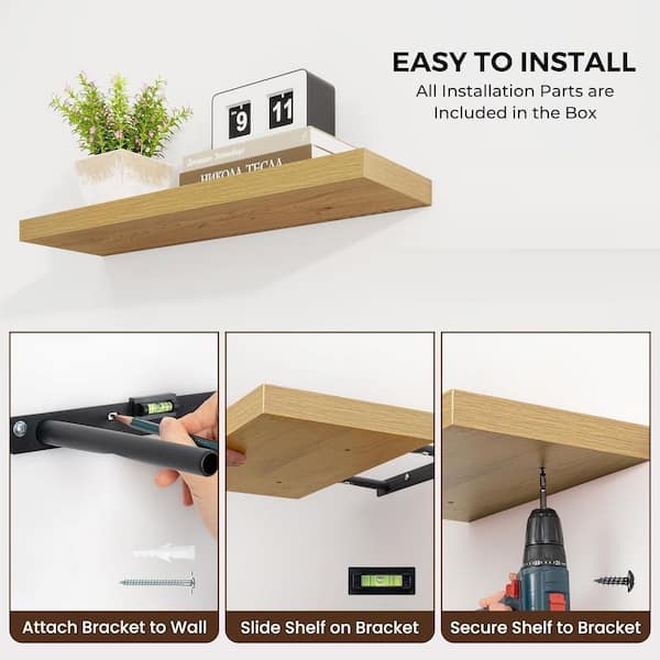 48 in. W x 9.1 in. D Oak Floating Shelves Decorative Wall Shelf (Set of 2)