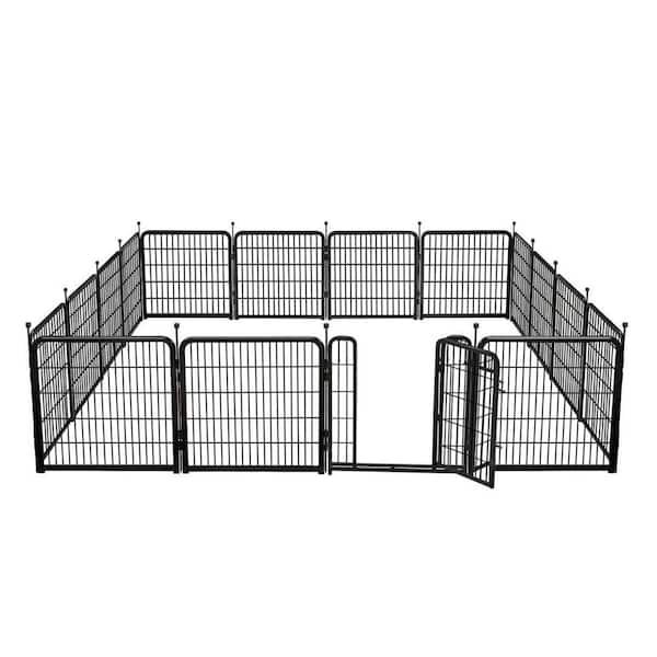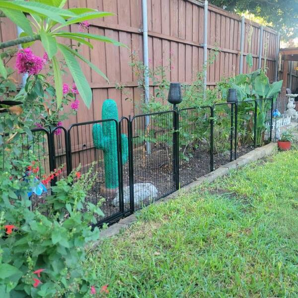 48 in. x 17.7 ft. Iron Decorative Garden Fencing with Door, Animal Barrier Fence for Courtyards, Black
