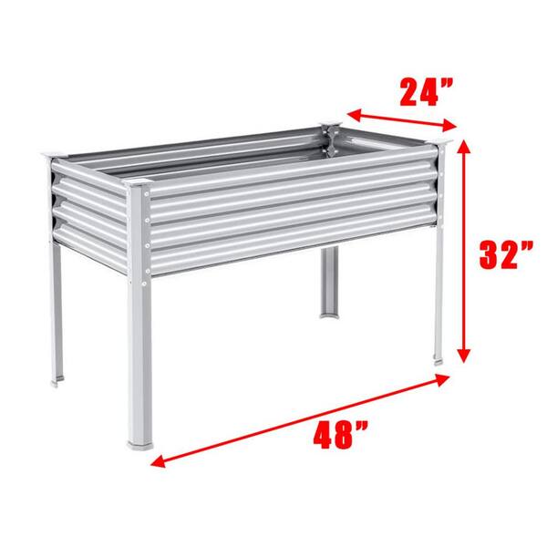 48 in. x 24 in. x 32 in. Silver Metal Elevated Raised Planter Box