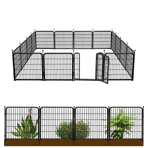 48 in. x 27 in. Heavy Duty Iron Metal Garden Fence with Gate, 12 Panels Total 26.6 ft.