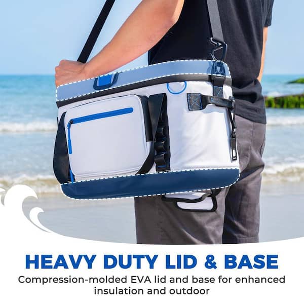 48 qt. Large Soft Cooler Bag Hard Lid and Base Portable Beach Ice Chest with Shoulder Strap Leakproof Camping Cooler