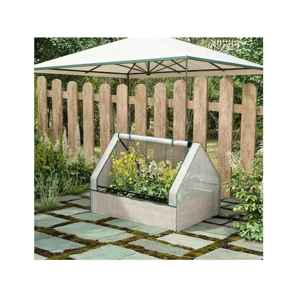 49.25 in. W x 37.5 in. D x 36.25 in. H White Steel Raised Garden Bed with Mini Greenhouse, Planter Box with Cover