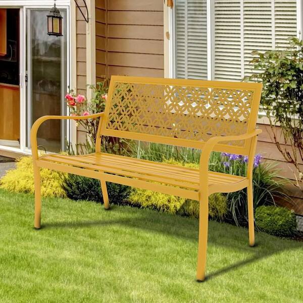49.5 in 2-Person Sunflower Yellow Metal Outdoor Bench with Armrests
