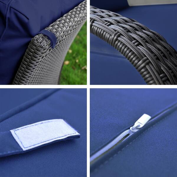 5.12 in. Wicker Outdoor Recliner Chair, Automatic Adjustable Wicker Lounge Recliner Chair with Blue Thicken Cushion