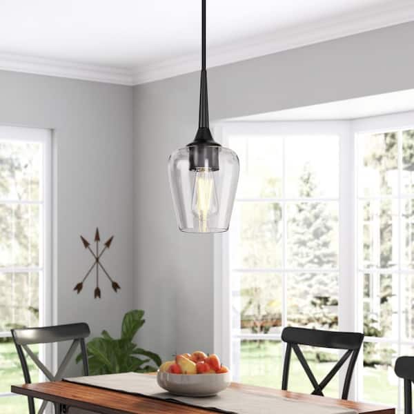 5.51 in. 1-Light Black Modern Farmhouse Pendant Light with Clear Glass Shade and Adjustable Rod