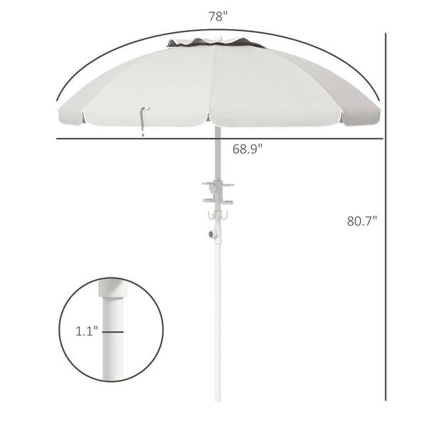 5.7 in. Cream White Portable Beach Umbrella with Tilt, Adjustable Height, 2-Cup Holders and Hooks, UV 40+ Protection