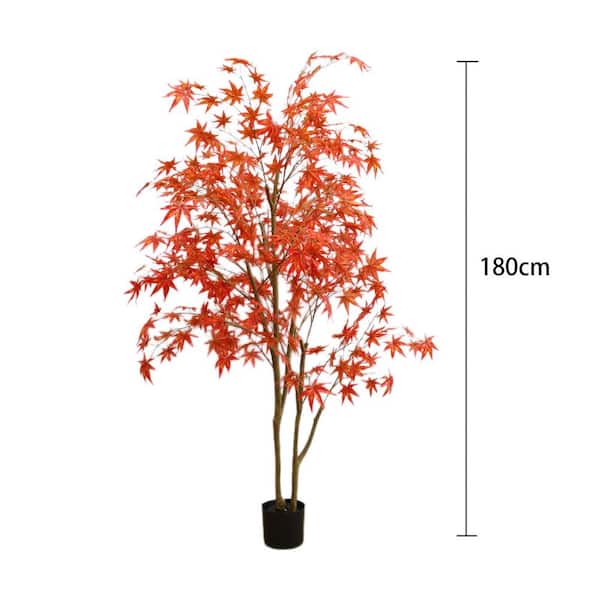 5.9 ft. Artificial Tree In Plastic Pot, Fall Faux Red Maple Leaves Silk Maple Tree Plant