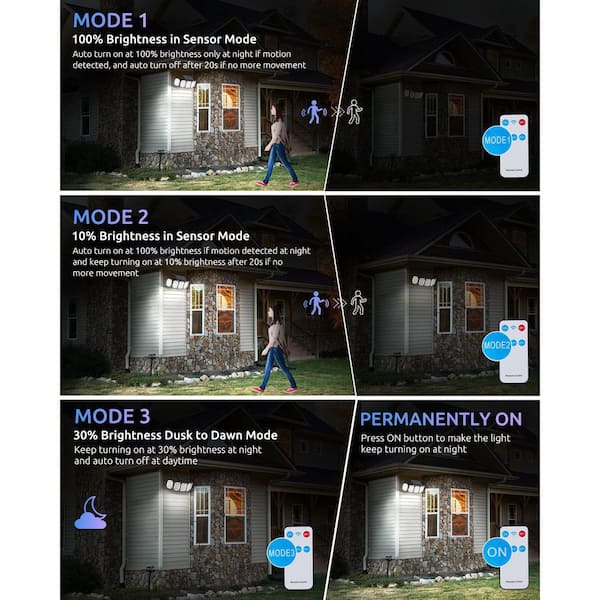 5-Heads Outdoor Solar Powered Integrated LED Black Area Security Floodlight Light with Motion Sensor (2-Pack)