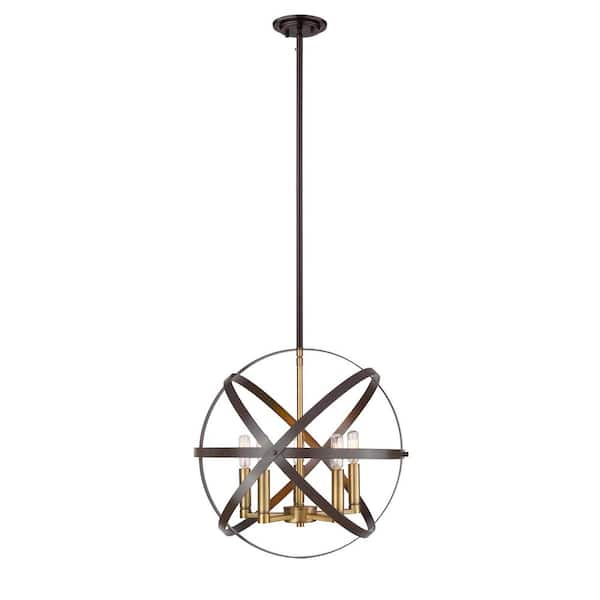 5-Light Hammered Bronze Plus Olde Brass Candlestick Pendant