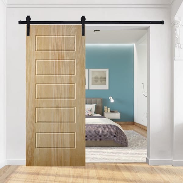 5-Panel Riverside Designed 84 in. W. x 28 in. Wood Panel Mother Nature Painted Sliding Barn Door with Hardware Kit
