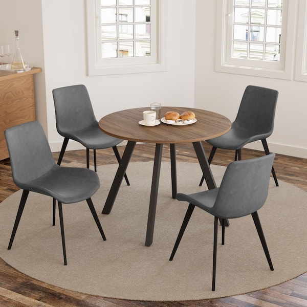 5-Piece 34.6 in. Modern Round Dining Table with 4-Dining Chairs(Walnut Table Plus 4-Grey Chairs)