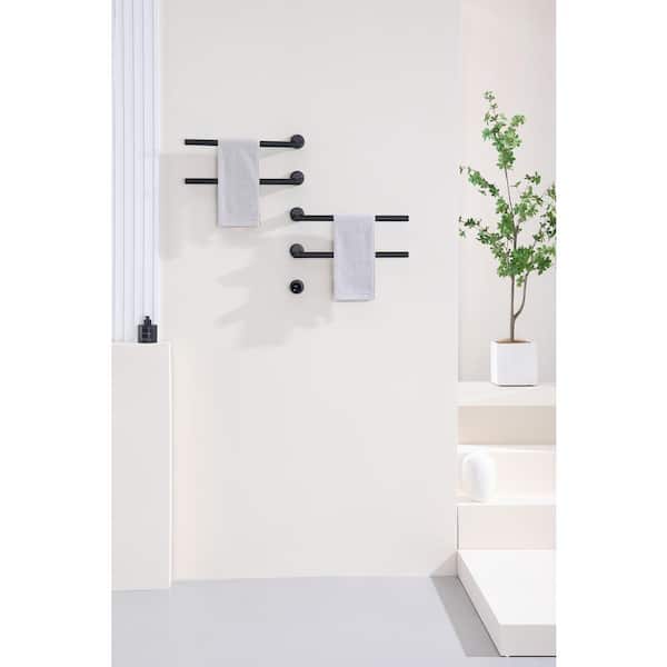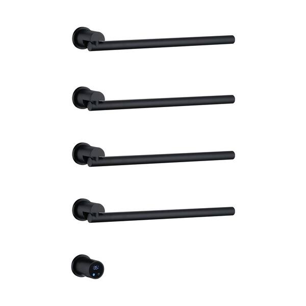 5-Piece 4-Holders Wall-Mounted Stainless-Steel Movable Electric Heated Towel Drying Rack in Black