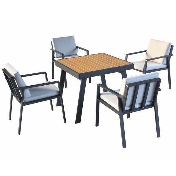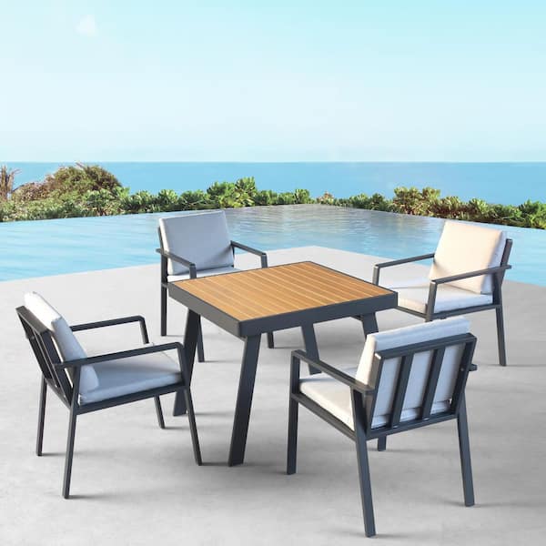 5-Piece Aluminum Patio Outdoor Dining Set, Dining Chair with Seating Cushions Set 4-Pieces and 35.4 in. Square Table