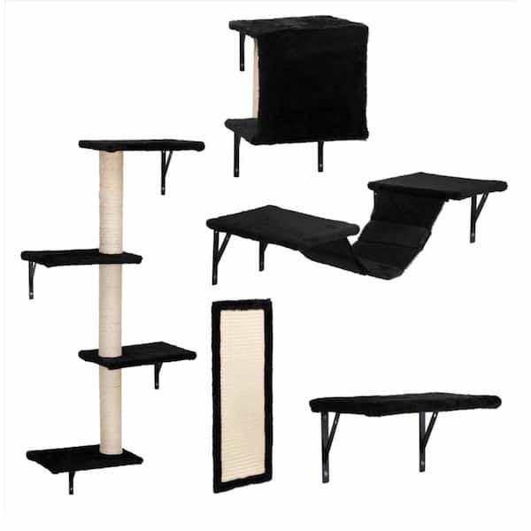 5-Piece Bath Hardware Set Wall Mounted Cat Climber Set Floating Cat Shelves and Perches Cat Activity Tree in Black
