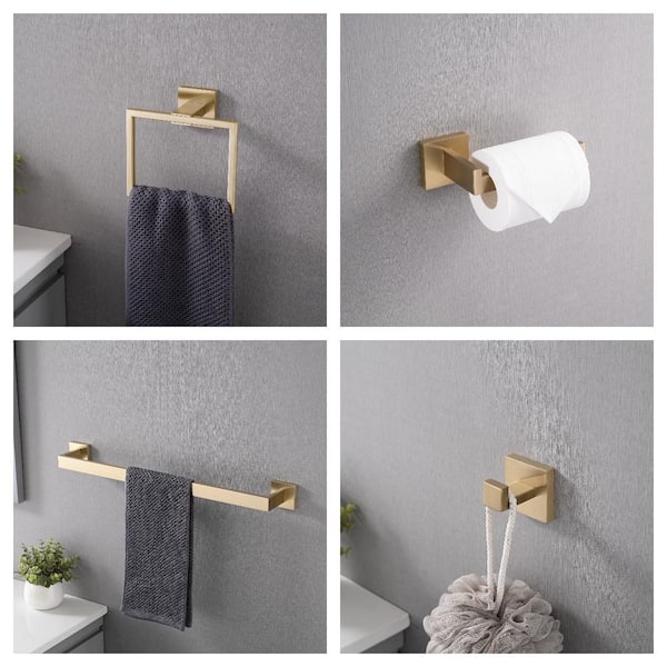 5-Piece Bath Hardware Set with 23.82 in. Towel Bar, Toilet Paper Holder, Robe Towel Hooks in Brushed Gold
