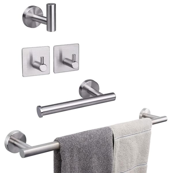 5-Piece Bath Hardware Set with Toilet Paper Holder, 3-Pack Robe Towel Hooks and 24 in. Towel Bar in Brushed Nickel