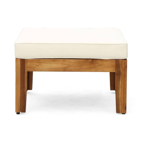 5-Piece L-Shaped Acacia Wood Sectional Patio Sofa Set with Ottoman and Coffee Table-Durable Hardwood Frame with Cushions