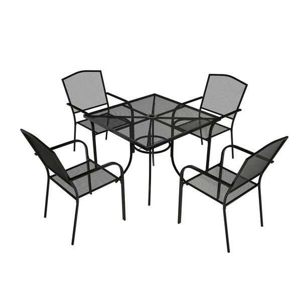 5-Piece Metal Outdoor Dining Furniture Set with Umbrella Hole, Rustproof Steel Mesh, Random Umbrella