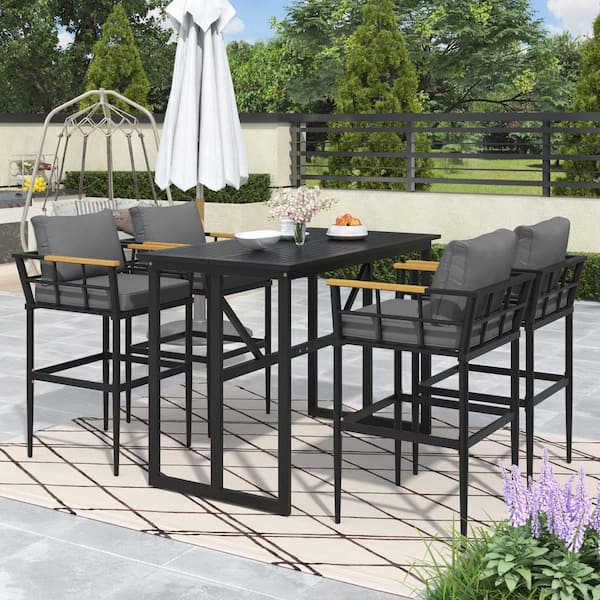 5-Piece Metal Outdoor Dining Set with Gray Cushion, Patio Furniture Set, Patio Dining Chairs and Outdoor Metal Table