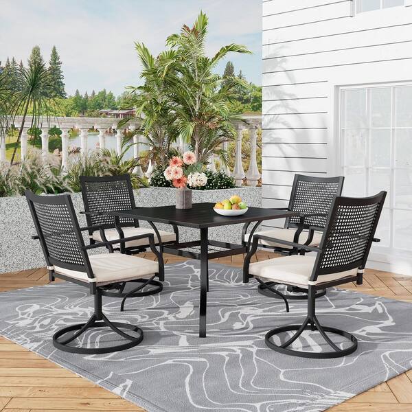 5-Piece Metal Outdoor Dining Set with Umbrella Hole and Beige Textilene Cushions (Limited Time Free Umbrella)