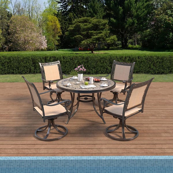 5-Piece Metal Outdoor Patio Dining Set with Dining Swivel Chairs and 48 in. Round Dining Table