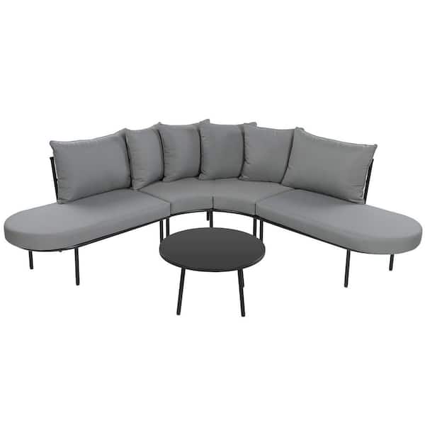 5-Piece Metal Patio Conversation Set with Gray Cushions, All Weather Iron Frame Outdoor Indoor Conversation Set