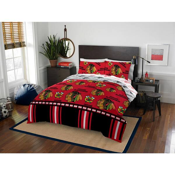 5-Piece Multi Colored Chicago Blackhawks Rotary Queen Size Bed In a Bag Set