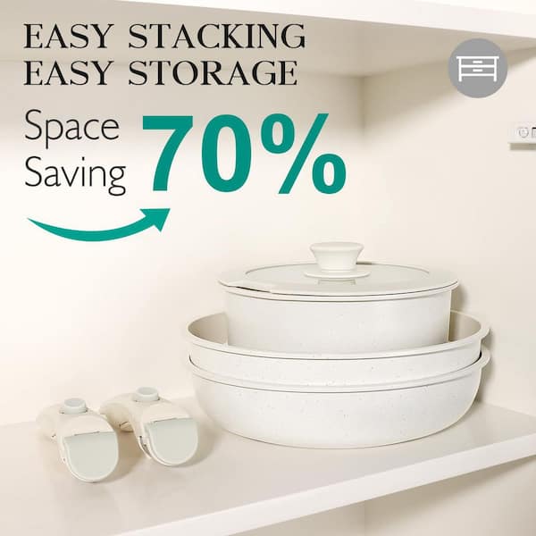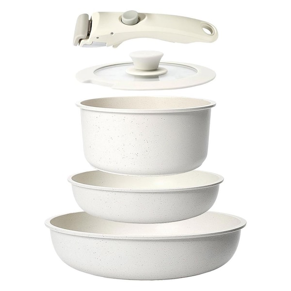 5 Piece Nonstick Cookware Set Granite Coating Removable Handle Induction Safe Sturdy Easy Storage Kitchen Set