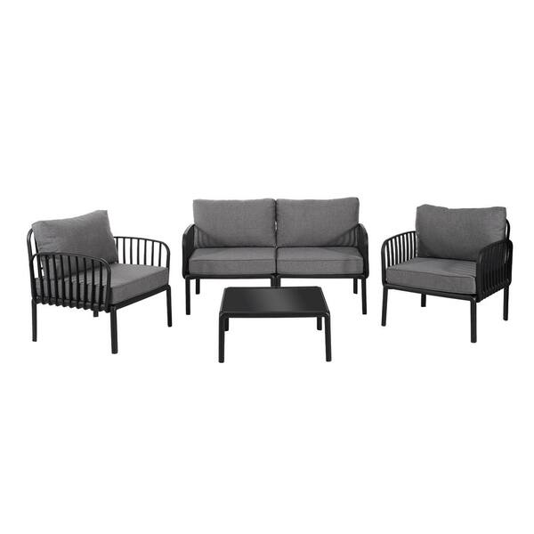 5 Piece Patio Conversation Sets, Modern Outdoor Patio Sectional Furniture Set with Square Coffee Table, Thick Cushion