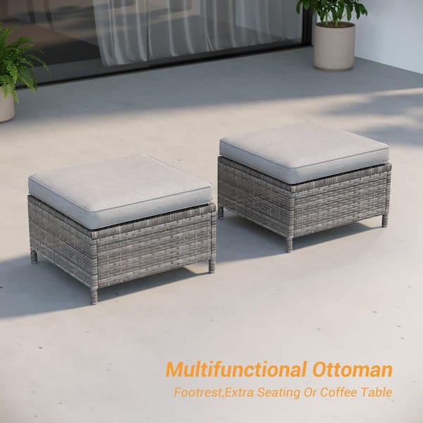 5-Piece Patio Outdoor Grey Wicker Conversation Seating Set Thickening With Swiveling Rocker, Linen Grey Cushion