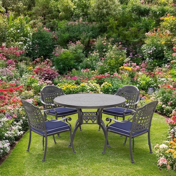 5-Piece Set Cast Aluminum Outdoor Dining Set with Random Colors Cushions