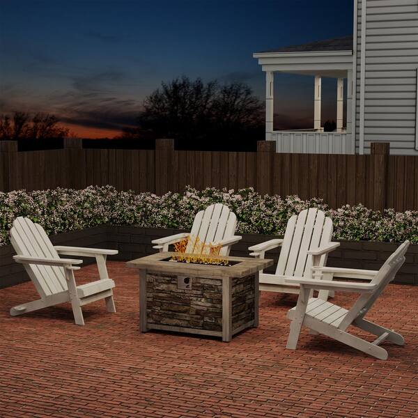 5-Piece Set Outdoor Adirondack HDPE Material Plastic White Chair with 43.5 in. Composite Material Patio Fire Pit Table