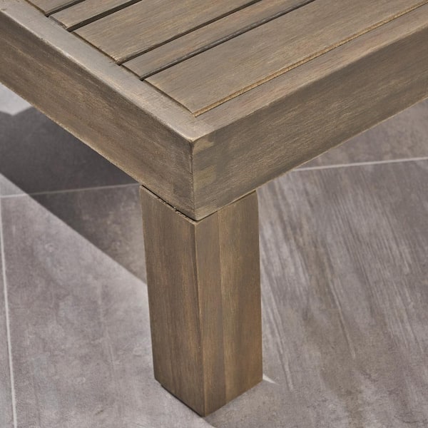 5-Piece Teak Outdoor patio Sectional Sofa Furniture Set with Acacia Coffee Table and Dark Grey Cushions
